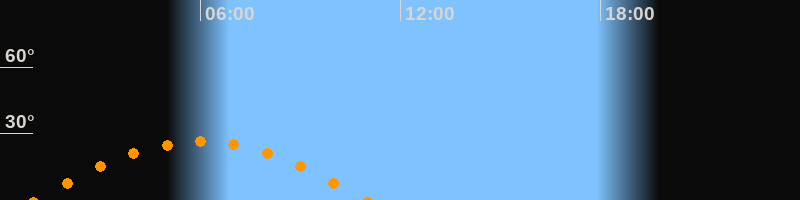| Höchster Stand (Kulmination) | 06:00 Uhr (h = 26,3°) |