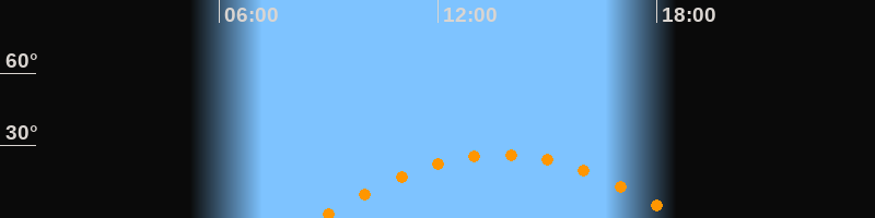 | Höchster Stand (Kulmination) | 13:42 Uhr (h = 26,3°) |