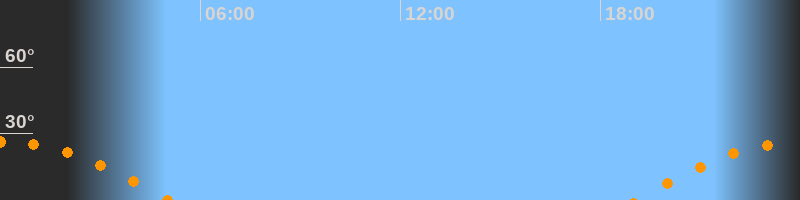 | Untergang | 05:03 Uhr im Westen (αAz = 250°) |