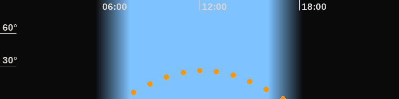 | Höchster Stand (Kulmination) | 12:09 Uhr (h = 26,3°) |