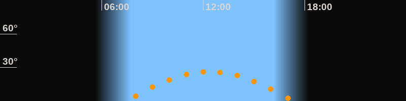 | Höchster Stand (Kulmination) | 12:23 Uhr (h = 26,3°) |