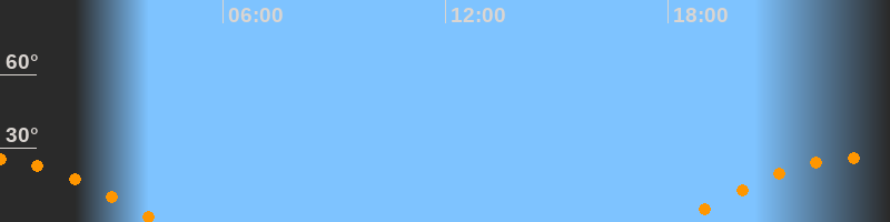 | Untergang | 04:18 Uhr im Westen (αAz = 250°) |