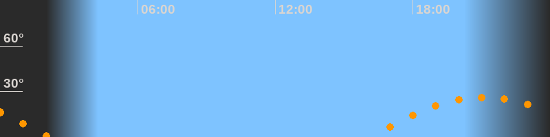 | Untergang | 02:09 Uhr im Westen (αAz = 250°) |