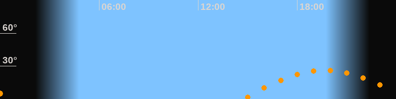 | Aufgang | 14:43 Uhr im Osten (αAz = 110°) |