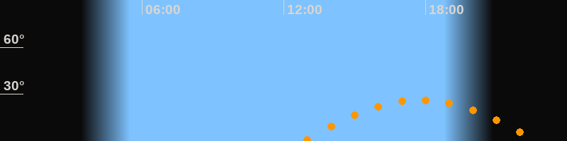 | Höchster Stand (Kulmination) | 17:46 Uhr (h = 26,3°) |