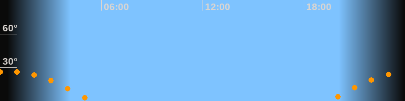 | Untergang | 05:26 Uhr im Westen (αAz = 250°) |
