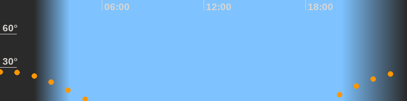 | Untergang | 05:14 Uhr im Westen (αAz = 250°) |