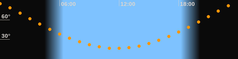 | Höchster Stand (Kulmination) | 23:45 Uhr (h = 85,1°) |