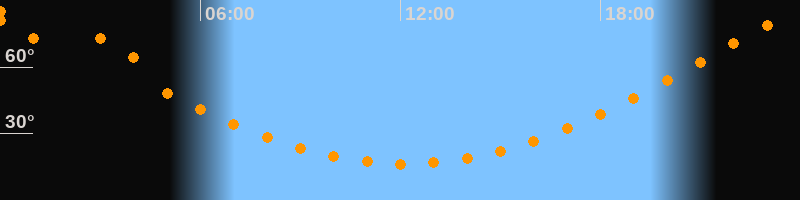 | Höchster Stand (Kulmination) | 00:06 Uhr (h = 85,1°) |