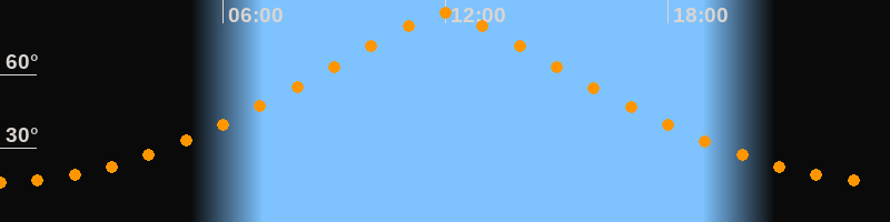 | Höchster Stand (Kulmination) | 11:59 Uhr (h = 85,1°) |
