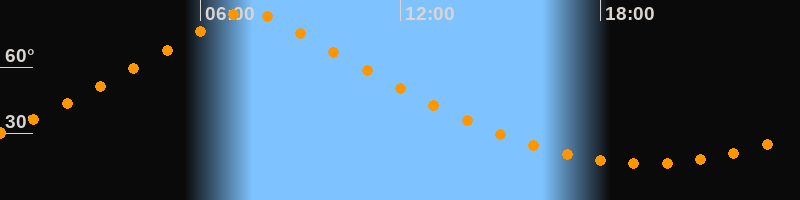 | Höchster Stand (Kulmination) | 07:26 Uhr (h = 85,1°) |