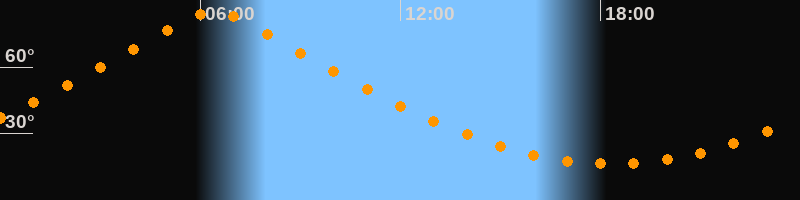 | Höchster Stand (Kulmination) | 06:23 Uhr (h = 85,1°) |