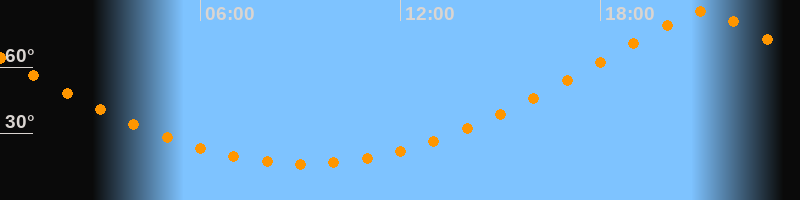 | Höchster Stand (Kulmination) | 21:06 Uhr (h = 85,1°) |