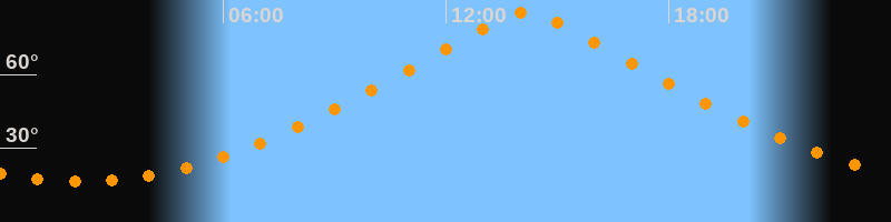 | Höchster Stand (Kulmination) | 14:09 Uhr (h = 85,1°) |