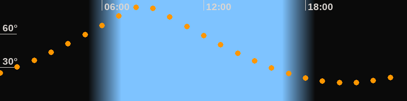 | Höchster Stand (Kulmination) | 08:26 Uhr (h = 85,1°) |