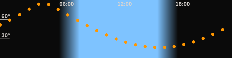 | Höchster Stand (Kulmination) | 04:27 Uhr (h = 85,1°) |