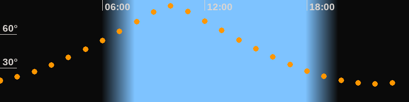 | Höchster Stand (Kulmination) | 10:01 Uhr (h = 85,1°) |