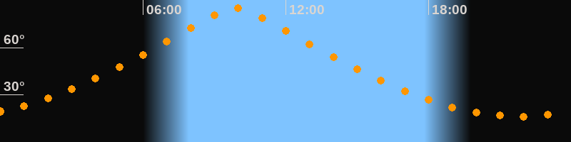 | Höchster Stand (Kulmination) | 09:54 Uhr (h = 85,1°) |