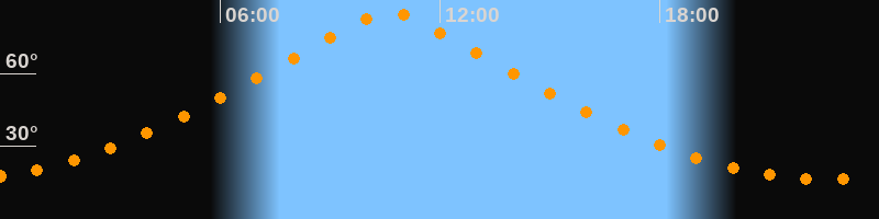 | Höchster Stand (Kulmination) | 10:37 Uhr (h = 85,1°) |