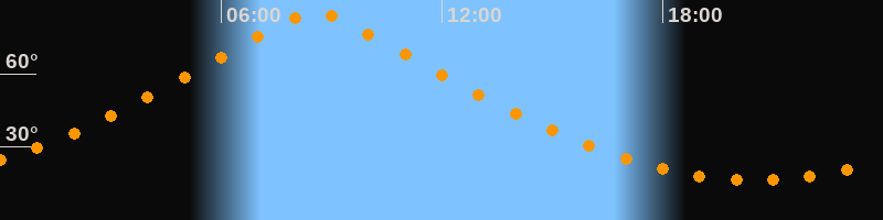 | Höchster Stand (Kulmination) | 08:34 Uhr (h = 85,1°) |