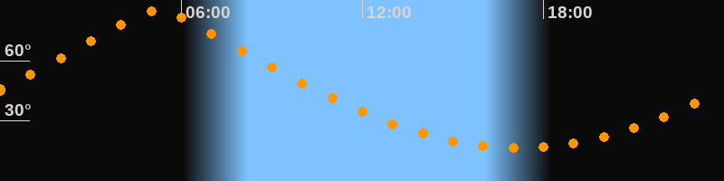 | Höchster Stand (Kulmination) | 05:13 Uhr (h = 85,1°) |