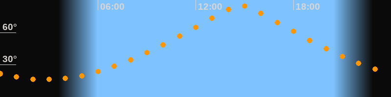 | Höchster Stand (Kulmination) | 14:45 Uhr (h = 85,1°) |
