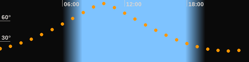| Höchster Stand (Kulmination) | 09:55 Uhr (h = 85,1°) |