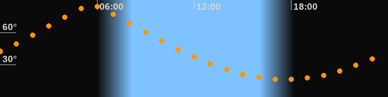 | Höchster Stand (Kulmination) | 05:39 Uhr (h = 85,1°) |