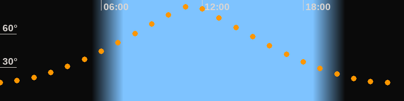 | Höchster Stand (Kulmination) | 11:20 Uhr (h = 85,1°) |
