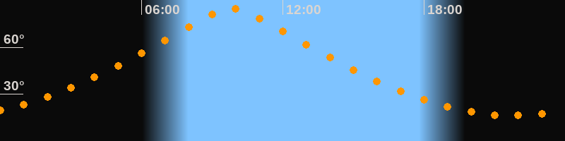 | Höchster Stand (Kulmination) | 09:49 Uhr (h = 85,1°) |