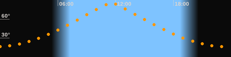 | Höchster Stand (Kulmination) | 11:32 Uhr (h = 85,1°) |