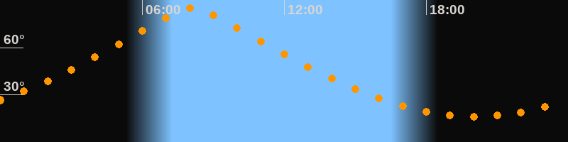 | Höchster Stand (Kulmination) | 08:07 Uhr (h = 85,1°) |