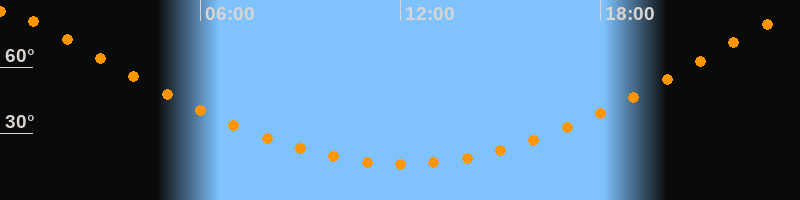 | Höchster Stand (Kulmination) | 00:03 Uhr (h = 85,1°) |