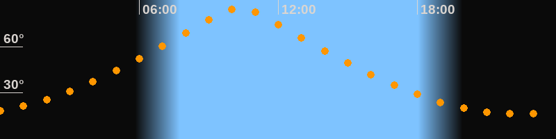 | Höchster Stand (Kulmination) | 10:19 Uhr (h = 85,1°) |