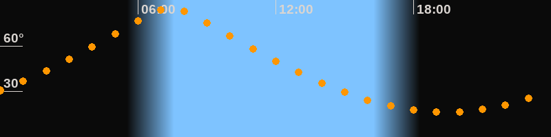 | Höchster Stand (Kulmination) | 07:25 Uhr (h = 85,1°) |