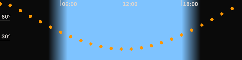 | Höchster Stand (Kulmination) | 00:16 Uhr (h = 85,1°) |