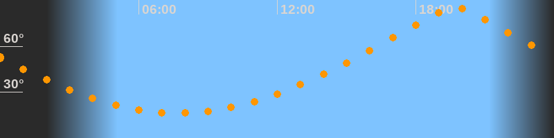 | Höchster Stand (Kulmination) | 19:42 Uhr (h = 85,1°) |