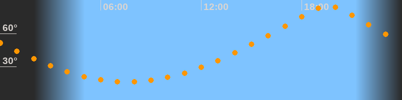 | Höchster Stand (Kulmination) | 19:34 Uhr (h = 85,1°) |