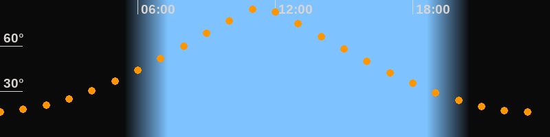 | Höchster Stand (Kulmination) | 11:22 Uhr (h = 85,1°) |