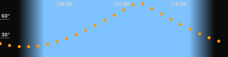 | Höchster Stand (Kulmination) | 14:36 Uhr (h = 85,1°) |