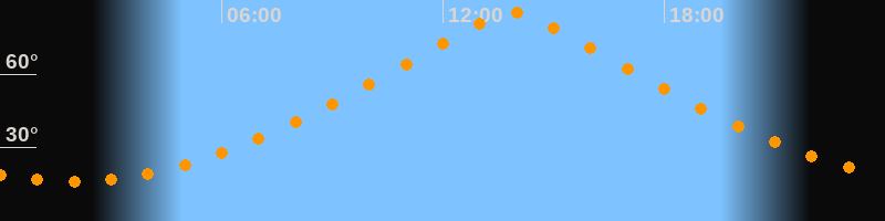 | Höchster Stand (Kulmination) | 13:53 Uhr (h = 85,1°) |