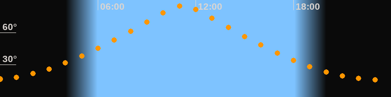 | Höchster Stand (Kulmination) | 11:12 Uhr (h = 85,1°) |