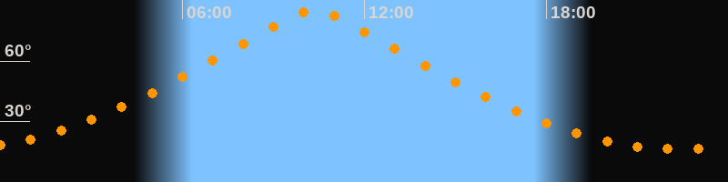 | Höchster Stand (Kulmination) | 10:20 Uhr (h = 85,1°) |