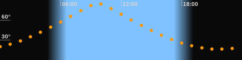 | Höchster Stand (Kulmination) | 09:41 Uhr (h = 85,1°) |