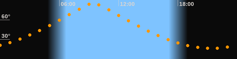 | Höchster Stand (Kulmination) | 09:25 Uhr (h = 85,1°) |