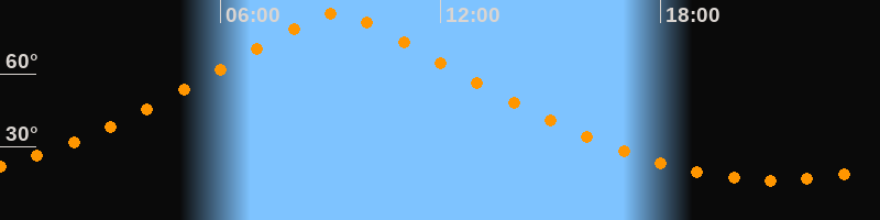 | Höchster Stand (Kulmination) | 09:10 Uhr (h = 85,1°) |