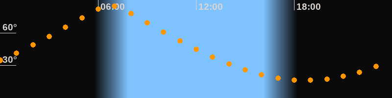 | Höchster Stand (Kulmination) | 06:44 Uhr (h = 85,1°) |