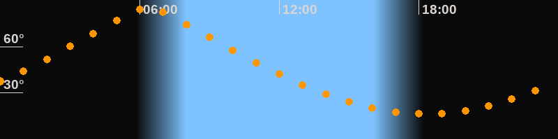 | Höchster Stand (Kulmination) | 06:21 Uhr (h = 85,1°) |