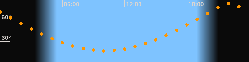 | Höchster Stand (Kulmination) | 22:05 Uhr (h = 85,1°) |