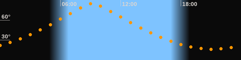 | Höchster Stand (Kulmination) | 09:11 Uhr (h = 85,1°) |